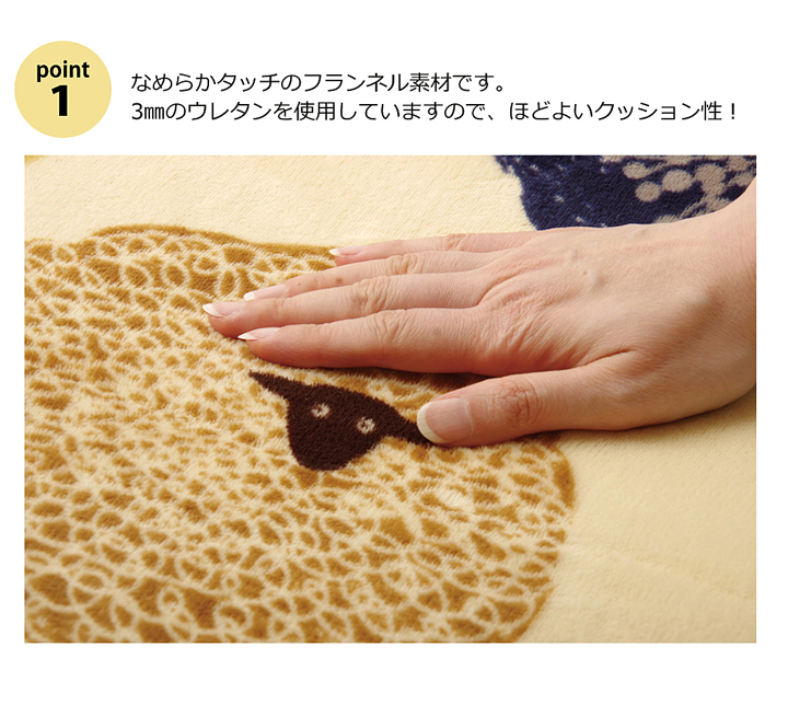 | 組成 | 表地=ポリエステル100%【フランネル】 裏地=ポリエステル100%【不織布】 中材=ウレタンフォーム5mm |