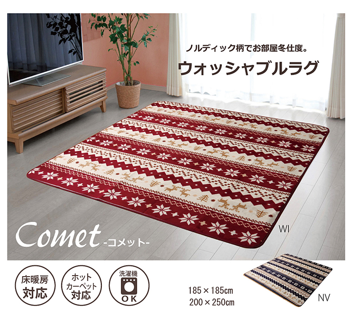 | ノルディック柄 洗えるラグ 『コメット』 約185×185cm |