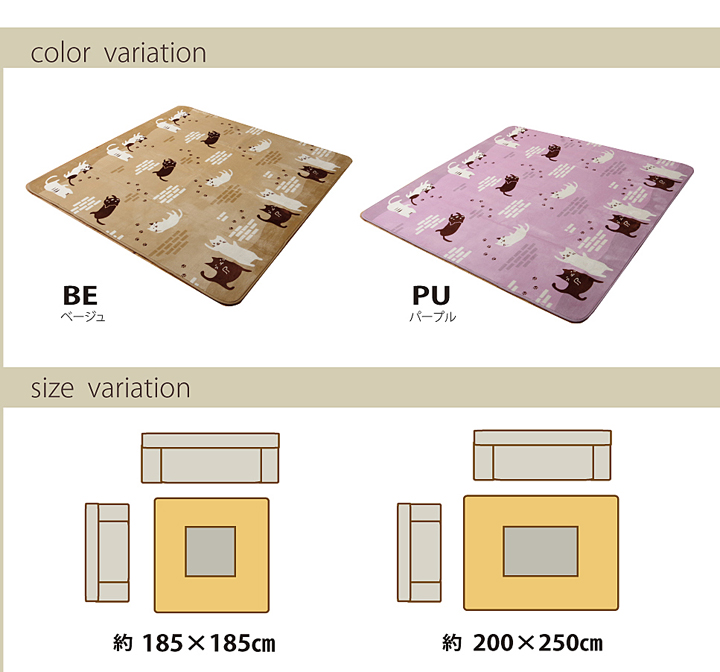 | ■人気のネコ柄のラグです。表地にはなめらかな肌触りのフラネルを使用しています。 ■ホットカーペットカバーとしてもご使用いただけます。 ■洗濯機で丸洗い可能なウォッシャブルタイプです。 ※写真は表記サイズと異なる場合がございます。 |