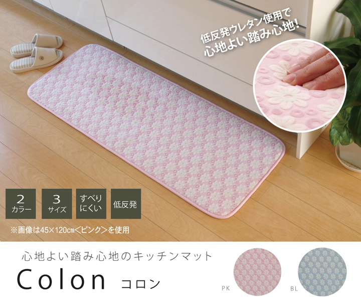 | 花柄 キッチンマット 『コロン』 約45×180cm 裏面滑りにくい加工 |