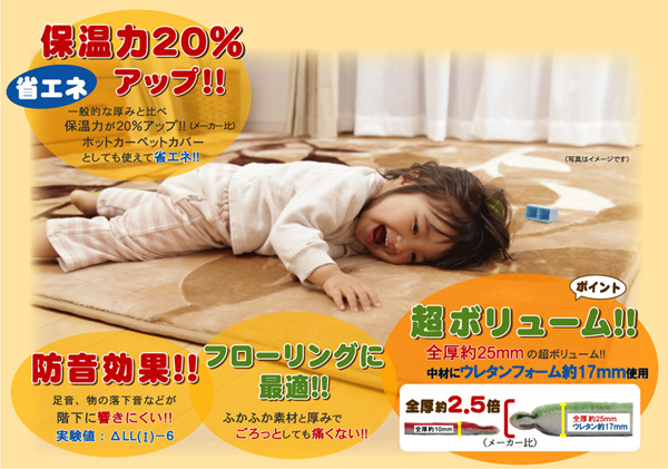 | ■表地にフィラメント糸(極めて長い繊維)を使用しています。遊び毛が出にくく、耐久性に優れています。パイルの長さは約18mmと適度な長さで、しっとりふわふわした、やさしいタッチ感に仕上げました。中材にはクッション性にこだわり、ウレタンを17mm使用しました。プニプニとした柔らかい感触とボリューム感をお楽しみください。フローリングを傷つけにくいよう裏には不織布を貼っています。ホットカーペットカバーとしてもご使用頂けます。 ■お洗濯は30℃以下の水温で弱い手洗いをお勧めします。 中性洗剤をご使用し(洗濯機は使用できません。) 日陰でつり干ししてください。 ※写真は表記サイズと異なる場合がございます。 |