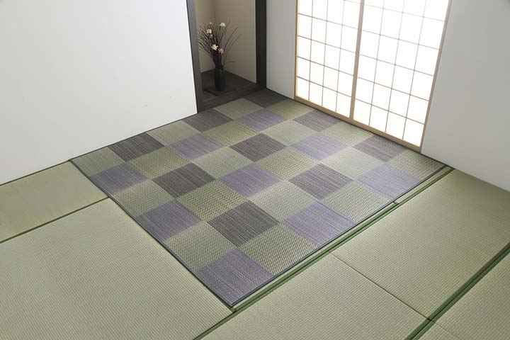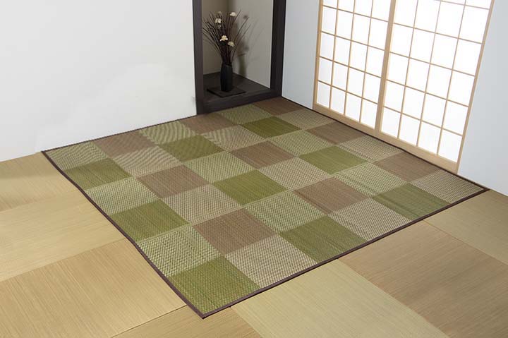 ■ 市松柄でシンプルなデザインに仕上げたい草花ござカーペットです。<br>