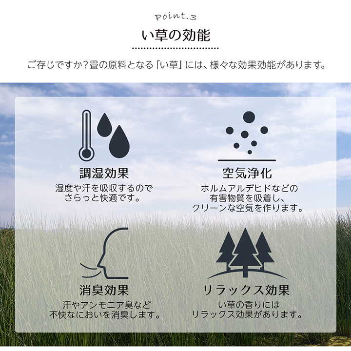 表地・裏地=い草100% ※袋三重織 ヘリ=ポリエステル100% |