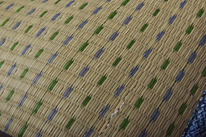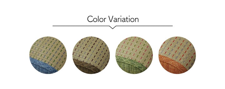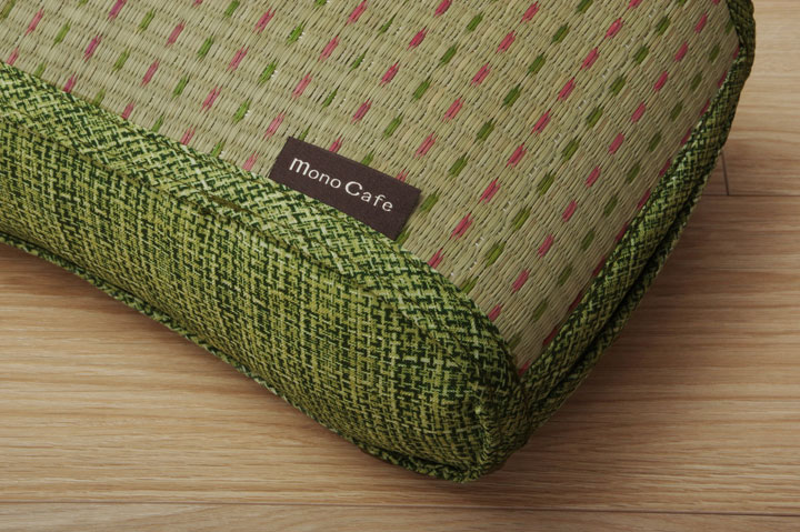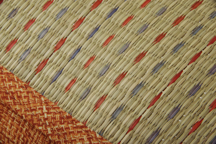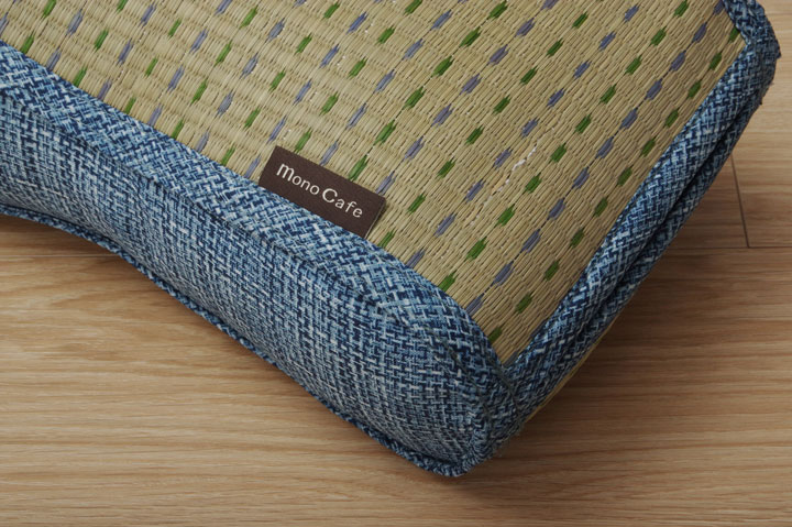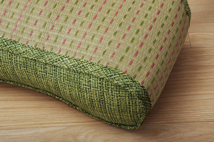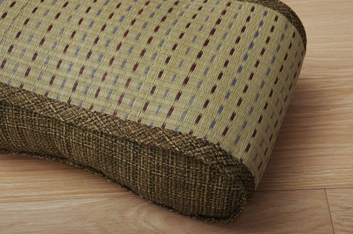 表地=い草(織込メセキ) 裏地=い草(織込メセキ) 中材=低反発ウレタン ※い草生地オモテ面にコバガード使用 |