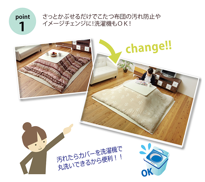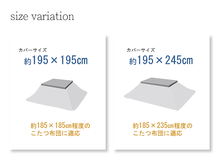 | 185×185cm程度のこたつ掛け布団に適応 | |