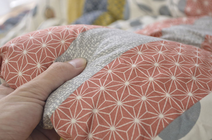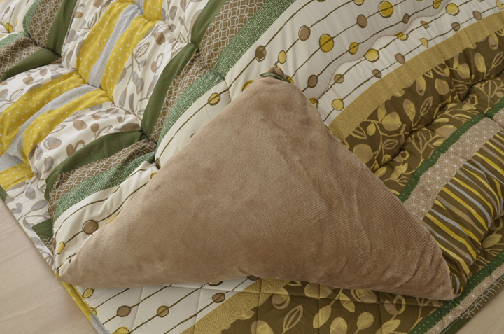 表地=ポリエステル100%【ピーチスキン】 裏地=ポリエステル100%【フランネル】 中綿=ポリエステル100% 2.5kg(東レ マッシュロンわた) |