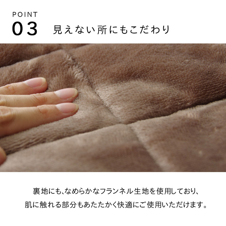 | 組成 | 素材:表地ポリエステル100%【フランネル先染め ジャガード】 裏地=ポリエステル100%【フランネル】 中材=ポリエステル100% |