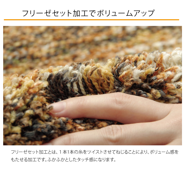 | 組成 | ポリプロピレン100% 53,000ノット ※フリーゼセット糸使用 パイル長約25mm |