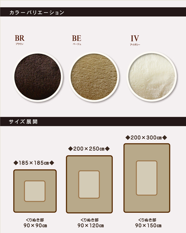 | 堀こたつ用ラグ 『H・フランアイズ堀』 約200×250cm(くり抜き部90×120cm) BE/BR/IV |