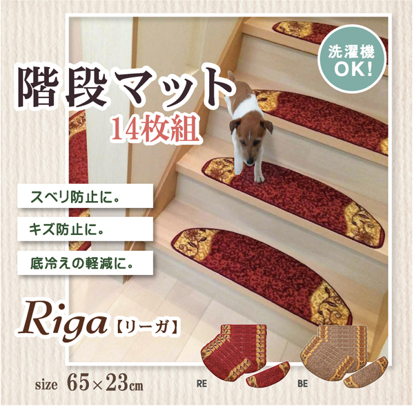 | 階段マット 洗える 王朝柄 『リーガ』 65×23cm 14枚組 滑りにくい加工 |