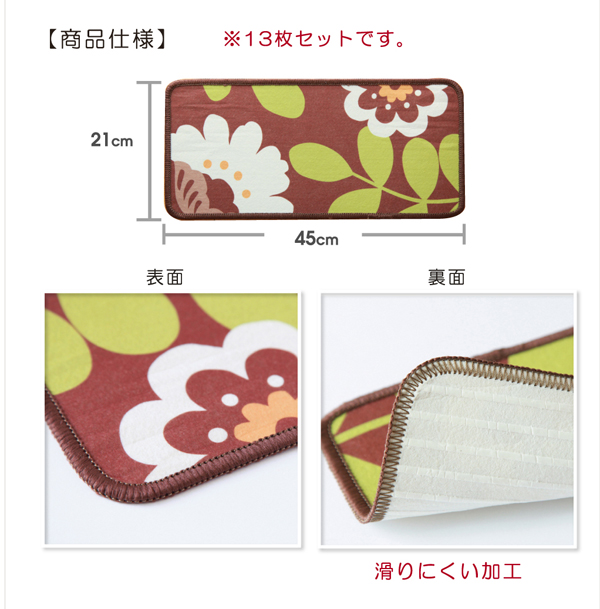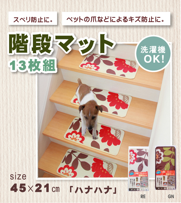 | 階段マット 花柄 『ハナハナNF』 45×21cm 13枚組 裏:吸着加工 |