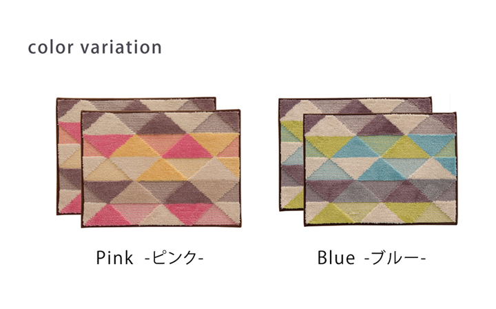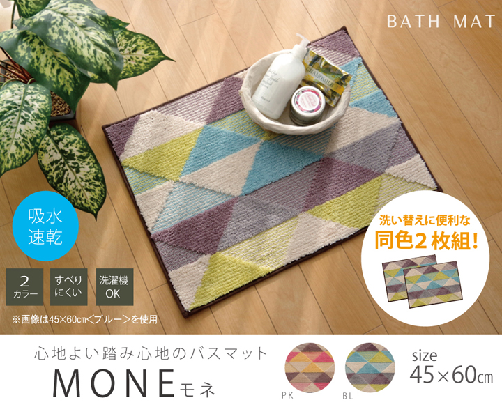 | バスマット 『モネ』 ブルー/ピンク 約45×60cm 同色2枚組 裏面滑りにくい加工 |