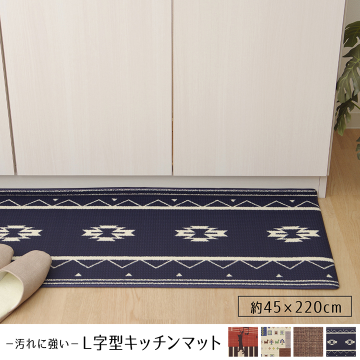| 汚れに強い L字型キッチンマット 約45×220cm |
