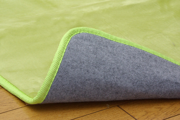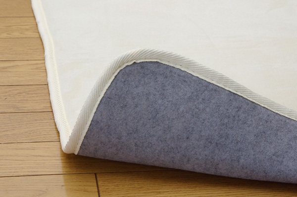 | ■表地にフランネル糸と呼ばれる繊維を使用し、なめらかなでしっとりとした肌触りに仕上げました。又表地には撥水加工を施しており、万が一水などをこぼしても表面張力で水玉状に汚れをはじき、染み込みにくいのでお手入れが簡単です。中材にはウレタンを5mm使用しており適度なクッション性があります。裏地にはフローリングを傷付けにくい不織布を貼っています。秋冬シーズンにはホットカーペットカバーとしてもご使用頂けます。 ■お洗濯は30℃以下の水温で弱い手洗いができます。中性洗剤を使用して下さい。 ■乾燥は日陰の吊り干しが良い。 ※写真は表記サイズと異なる場合がございます。 |