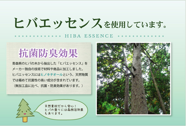 | 組成 | 側地=綿100% ※生地にヒバエッセンスを使用しています。 |