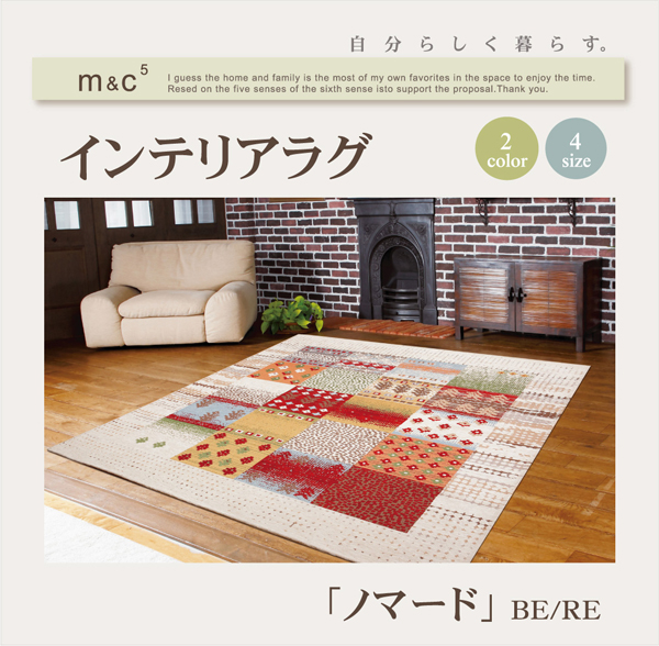 | m&c5シリーズ ベーシックラグ 『ノマード』 BE/RE 95×130cm |