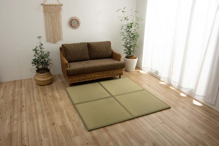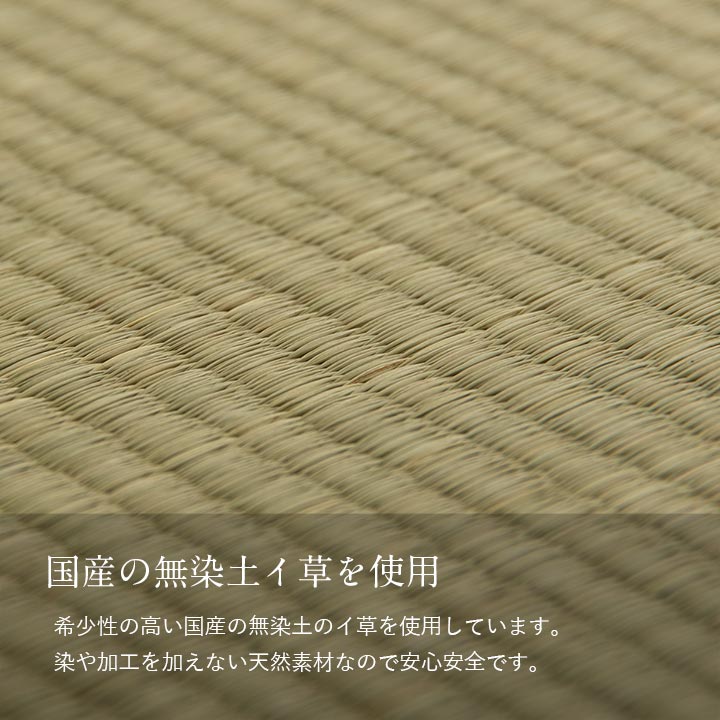 表地=い草(無染土) 中材=ポリエステル不織布 裏地=ポリエステル100% アクリル樹脂滑り止め |