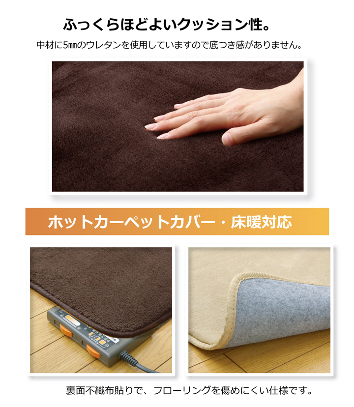 | ■表地にはフランネルと呼ばれる、しっとりとして非常にやわらかい生地を使用しています。 ■電気カーペットカバーとしても使用できます。フローリングを傷つけにくいよう裏には不織布を貼っています。 ※写真は表記サイズと異なる場合がございます。 |
