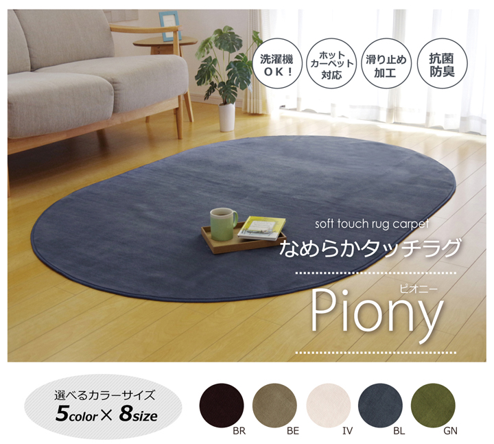 | ラグ カーペット 1畳 洗える 抗菌 防臭 無地 『ピオニー』 約140×200cm楕円 (ホットカーペット対応) |